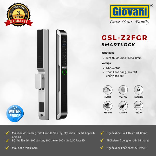 KHÓA VÂN TAY CỬA NHÔM GIOVANI GSL-Z2FB